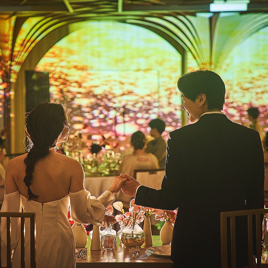招待状を手にしたゲストが、期待で胸が高鳴るウエディング空間