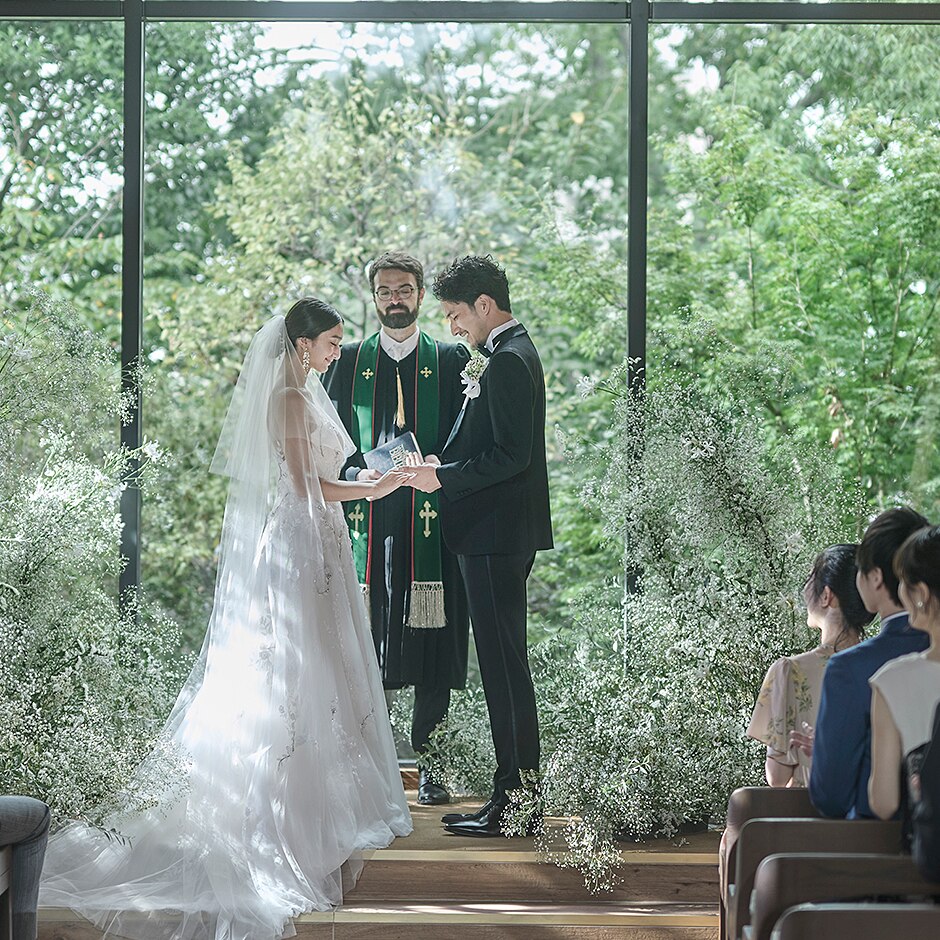 心地よい静けさと緑の中、祝福の音色がチャペル内を満たしてゆく。忘れられない永遠の誓いを。