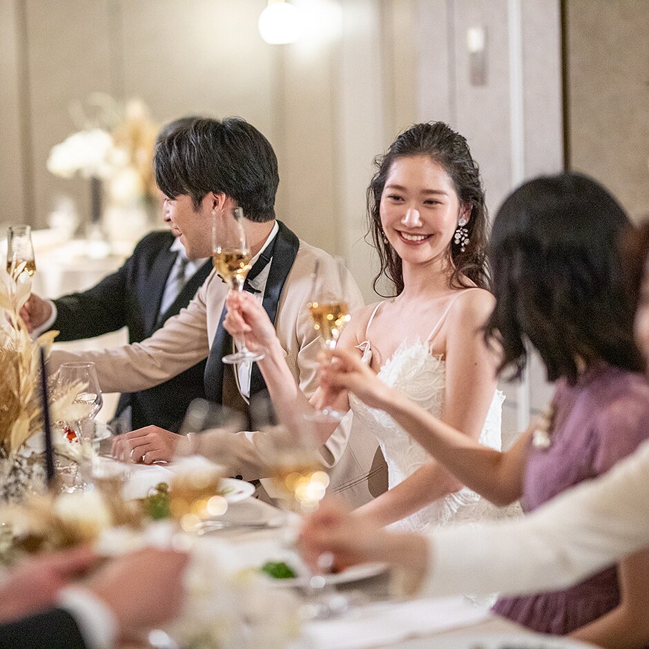 表参道駅より徒歩5分以内で立地抜群!美容サロンも近くにあり、参列者の皆さんも大喜びでした。 お花いっぱいの会場にしたくて丁寧に打ち合わせしていただけて当日も理想通りの装花で大満足です! 記憶だけでなく、思い出の品として残したい気持ちが強く、映像や画像でたくさん思い出を残せた点においても参列者の方に喜んでいただけました。カメラマンさんやスタイリストさん、スタッフの方が皆さん笑顔で気さくに声をかけてくださったので緊張もほぐれ、素敵な式になりました。 提携しているドレスショップでは直前にも関わらず、変更したい点を対応していただいたり、最初から最後まで私の好みを考えて寄り添ってくださいました。式中は忙しく、ご飯を食べられなかったので終わってからゆっくりとお食事をいただけたのも良かった点です!