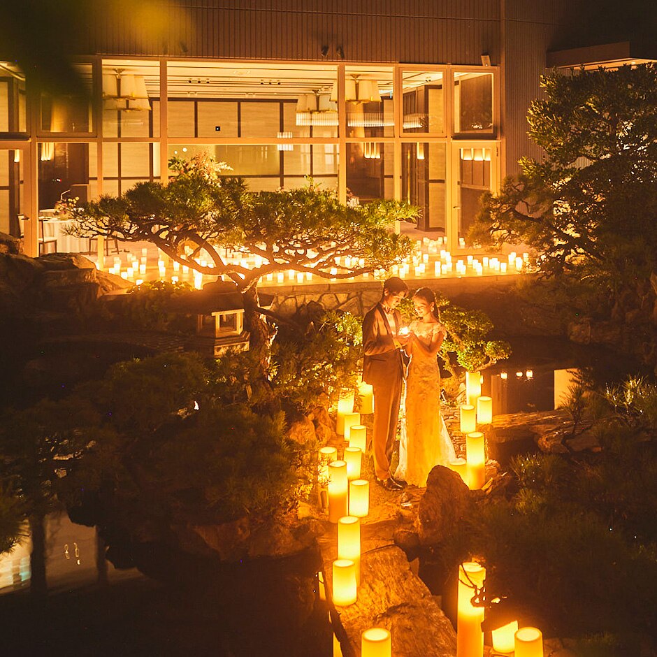 キャンドルの光が優しくふたりを包み込む 幻想的なナイトウェディング -