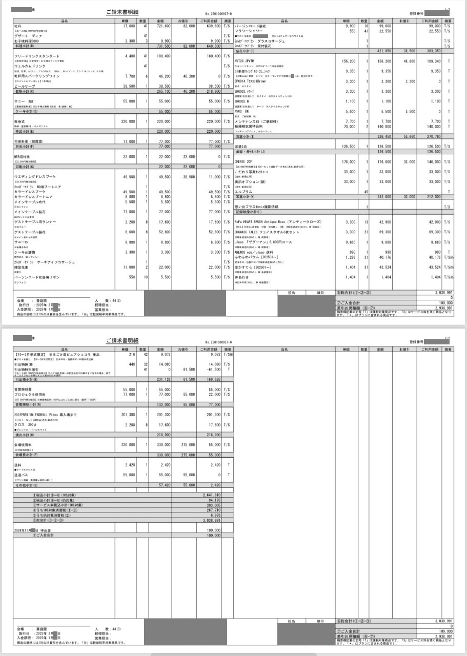 ※料金実例では申込金などを含む会場に支払った"総額"を表示しています。また、料金明細画像の項目名をもとに独自の基準で分類しています。
