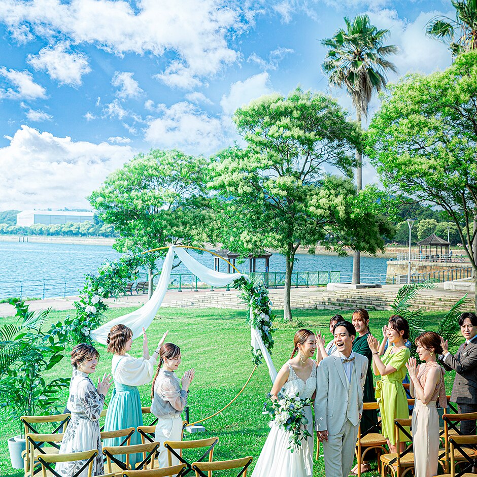 海と緑を背景に、街中のリゾートウェディングなウェディングを叶えて