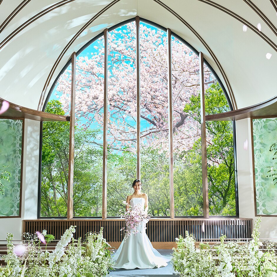 満開の桜や新緑など自然が巡る森のチャペル