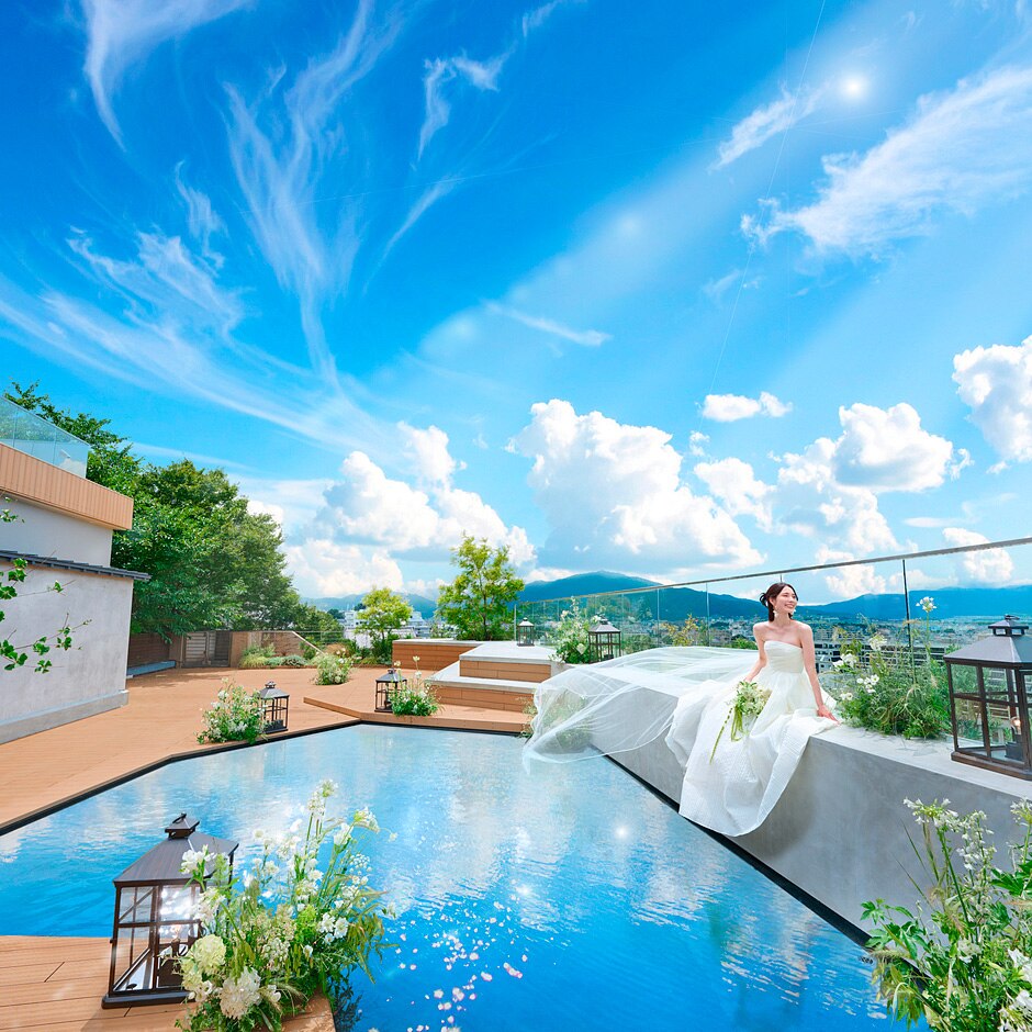 都心に程近いアクセスながら、緑豊かな森と自然×都市が交差する美しい眺望に出合える注目会場!福岡を見晴らす高台には空と緑が見事に調和する、水に満たされた新ガーデンテラスも完成。約8割の花嫁が即決する“都心のオアシス”をフェアでリアル体験。