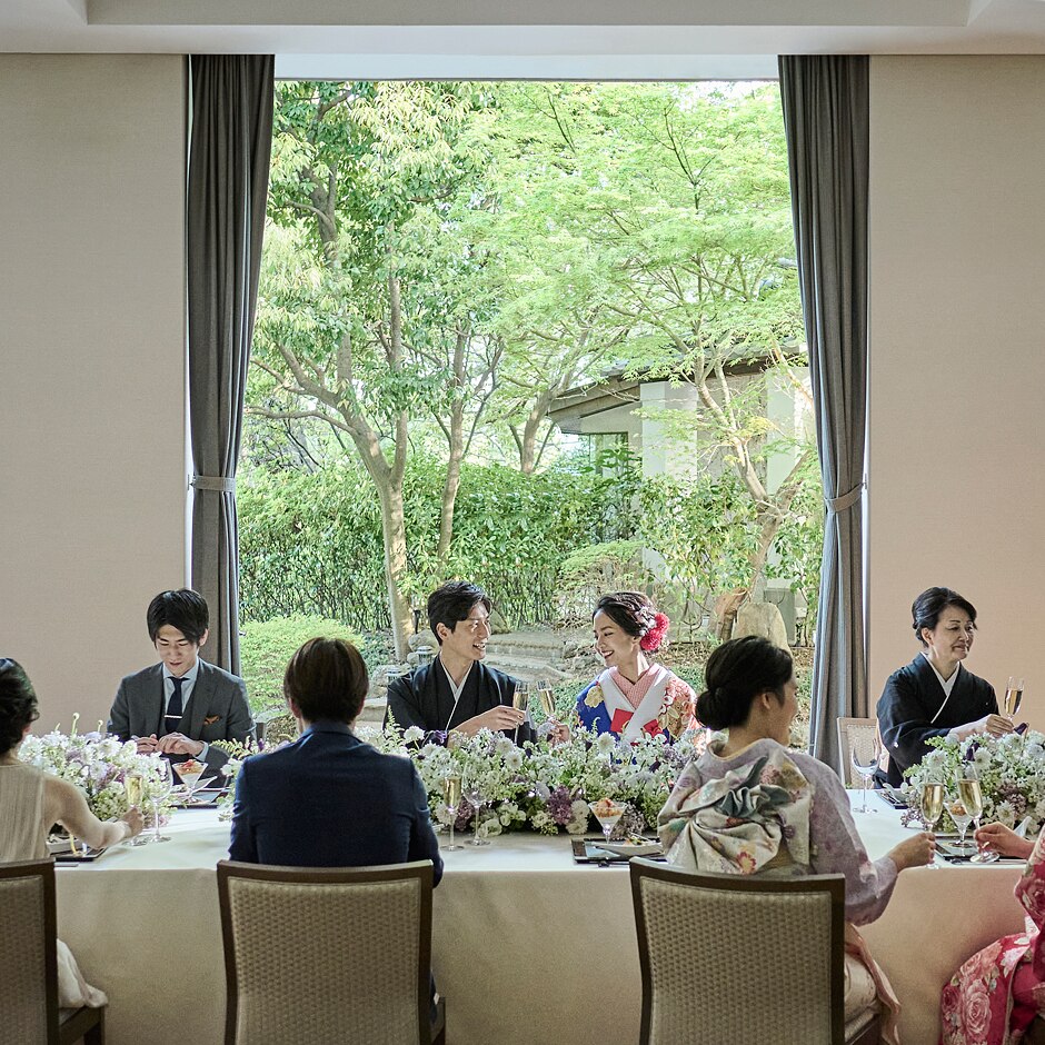 美しく四季が巡る、横浜の総鎮守『伊勢山皇大神宮』。伊勢神宮より譲渡された本殿で伝統的な神前式を叶えて。全館バリアフリーの『伊勢山ヒルズ』は真横に位置し専用通路直結。本格日本庭園を望みながら家族との繋がりを大事にできるプライベートパーティを。