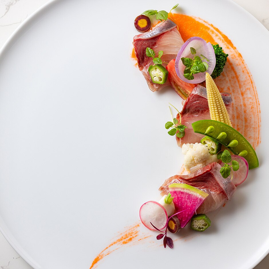 フェア試食の料理をご来館前にヒアリング(思い出の料理・出身地の名 物等)、式当日提供する料理も含めたおふたりだけのオリジナルコースを考案し ご用意! 質の高さだけでなくゲストの記憶に残 る料理をプロデュース