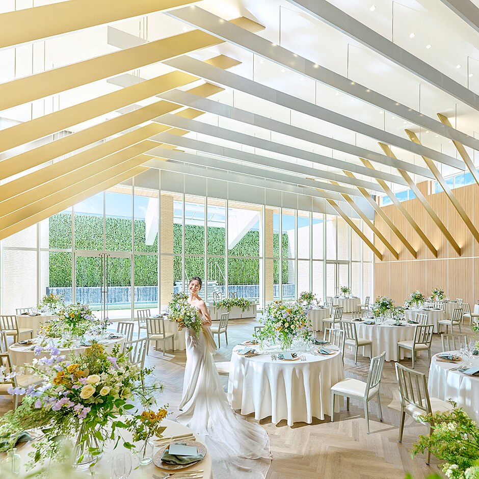【PRISM】天井高9Mの披露宴会場は解放感抜群の圧巻のスケール感♪雨天も安心の貸切テラスも完備◎