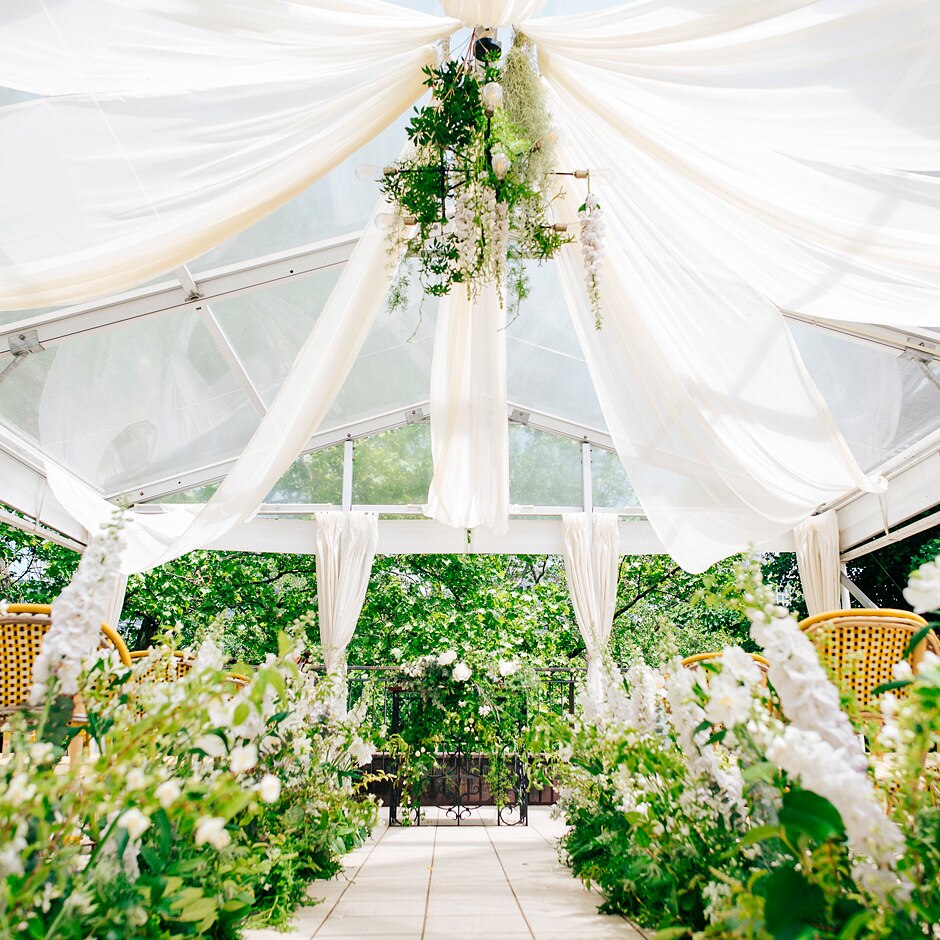360度を緑に囲まれた全天候型チャペルで開放的なガーデン挙式を