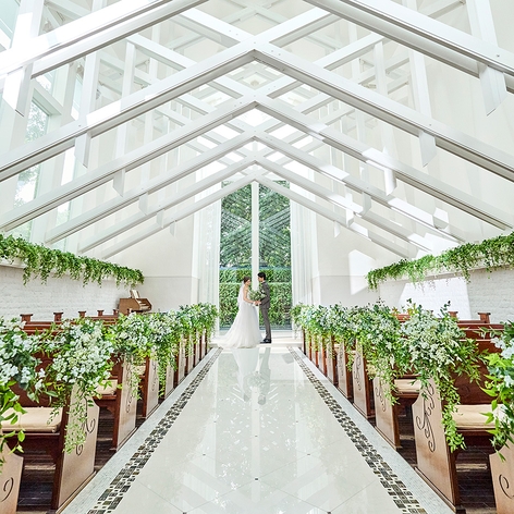 緑に包まれるガラスのチャペル!木漏れ日溢れる貸切邸宅で非日常なウエディングを