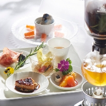 宿泊者専用のエグゼクティブラウンジでお料理・焼菓子・お飲みもの等、軽食を自由にお楽しみ頂ける、贅沢ホテル体験。景色を眺めながら優雅な時間をご提案※試食内容は時間帯によって異なります