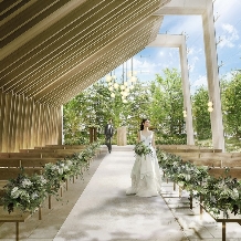 【贅沢試食も味わえる平日フェアがお勧め】実際の結婚式がない平日はじっくり式場見学&検討したい二人にお勧め。緑と光溢れるチャペルでの挙式体験や、選べるパーティ会場でのレイアウトや演出をご提案。