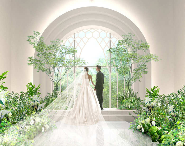 ベールをまとったようなデザインの美しい純白チャペル