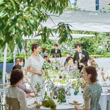 仙台駅徒歩圏内とは思えないほどに緑溢れるガーデンテラス。非日常なフォトジェニックなひとときを過ごせる。パーティ演出の自由度も高く、ゲストと近い距離で過ごせるから笑顔溢れる一日が過ごせると先輩花嫁からも好評の人気会場。ラウンジやソファ席などのアレンジも多数!